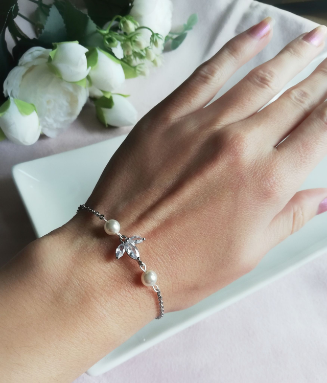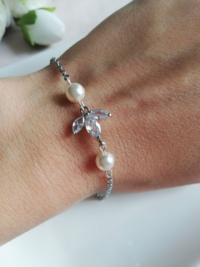 Laissez-vous séduire par la délicatesse de ce bracelet, une pièce raffinée pensée pour les mariées et leurs témoins. Composé d’une fleur élégante et de deux perles nacrées, il incarne à merveille le romantisme et la douceur des instants précieux.